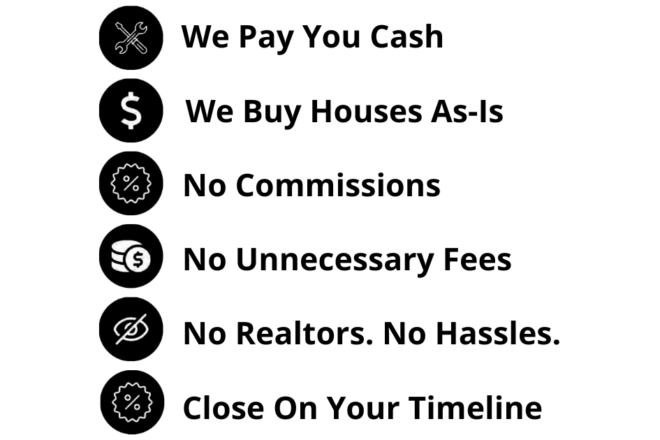 Get a fair cash offer for your house in just 5 minutes – no obligation, no hassle. We buy houses as-is, so skip the repairs, cleaning, and moving. We'll pay cash and close quickly, typically within 90 days. Our pricing is transparent: no hidden fees, commissions, or closing costs. We make selling your house fast and easy. Selling your house with us is simple. First, schedule a consultation to discuss your needs and goals. We'll evaluate your property and make a fair cash offer. Then, we'll take care of all the paperwork and logistics, so you can focus on what's next.